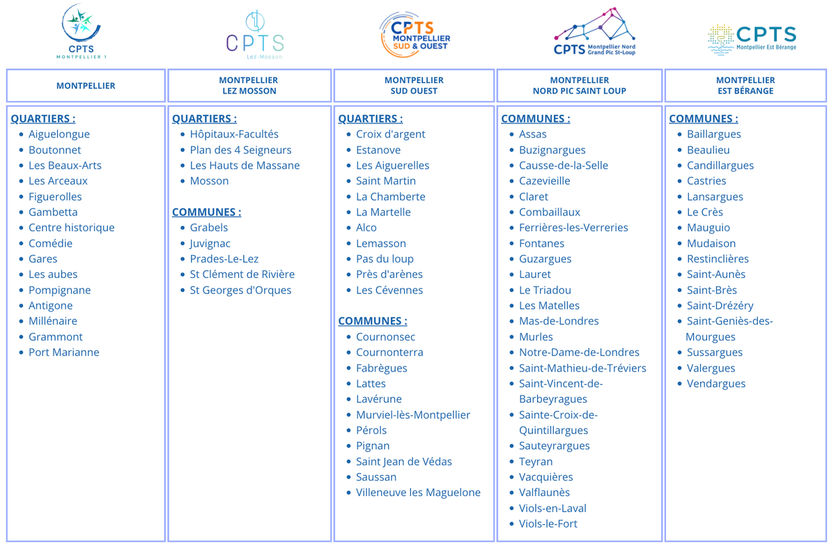 Si vous résidez dans une commune voisine, consultez la carte ou le tableau pour identifier la CPTS de votre secteur.